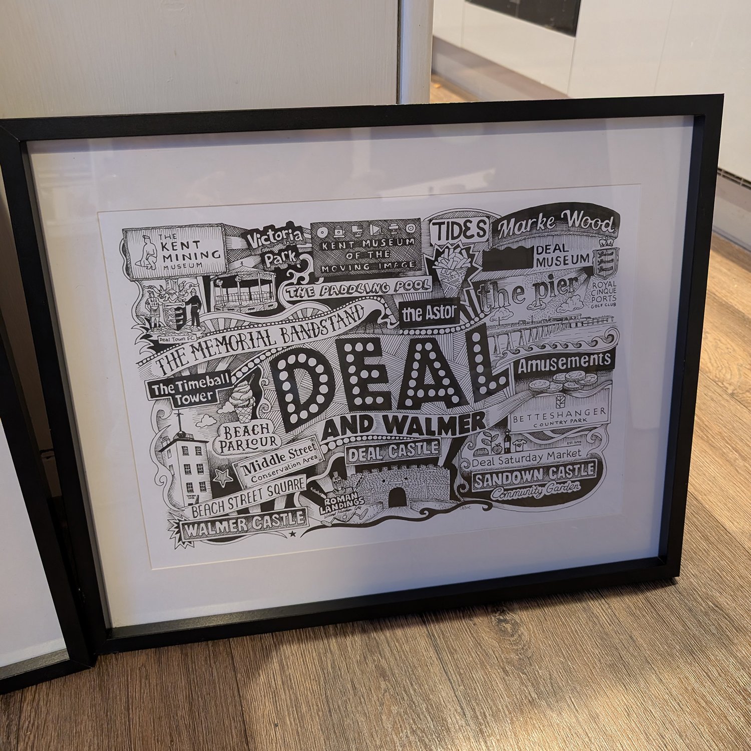 These are all A3 signed prints inside a luxury large 17" x 21" wooden frame, mounted inside, with glass not perspex. The frame has picture hooks on the reverse so it's ready for you to gift to someone, or hang on your wall.